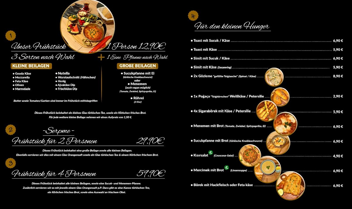 Günaydin Café offers a delightful selection of Turkish specialties that are truly a feast for the senses. Imagine starting your day with their popular Supreme Breakfast for two — a colorful medley of fresh ingredients, artfully arranged and bursting with flavor. Reviewers have praised the careful preparation and presentation, noting that each dish is not just food, but a work of culinary art (as expressed by Julia Appelhans). The menu caters well to vegetarians, ensuring that everyone can delight in the rich flavors of Turkish cuisine.